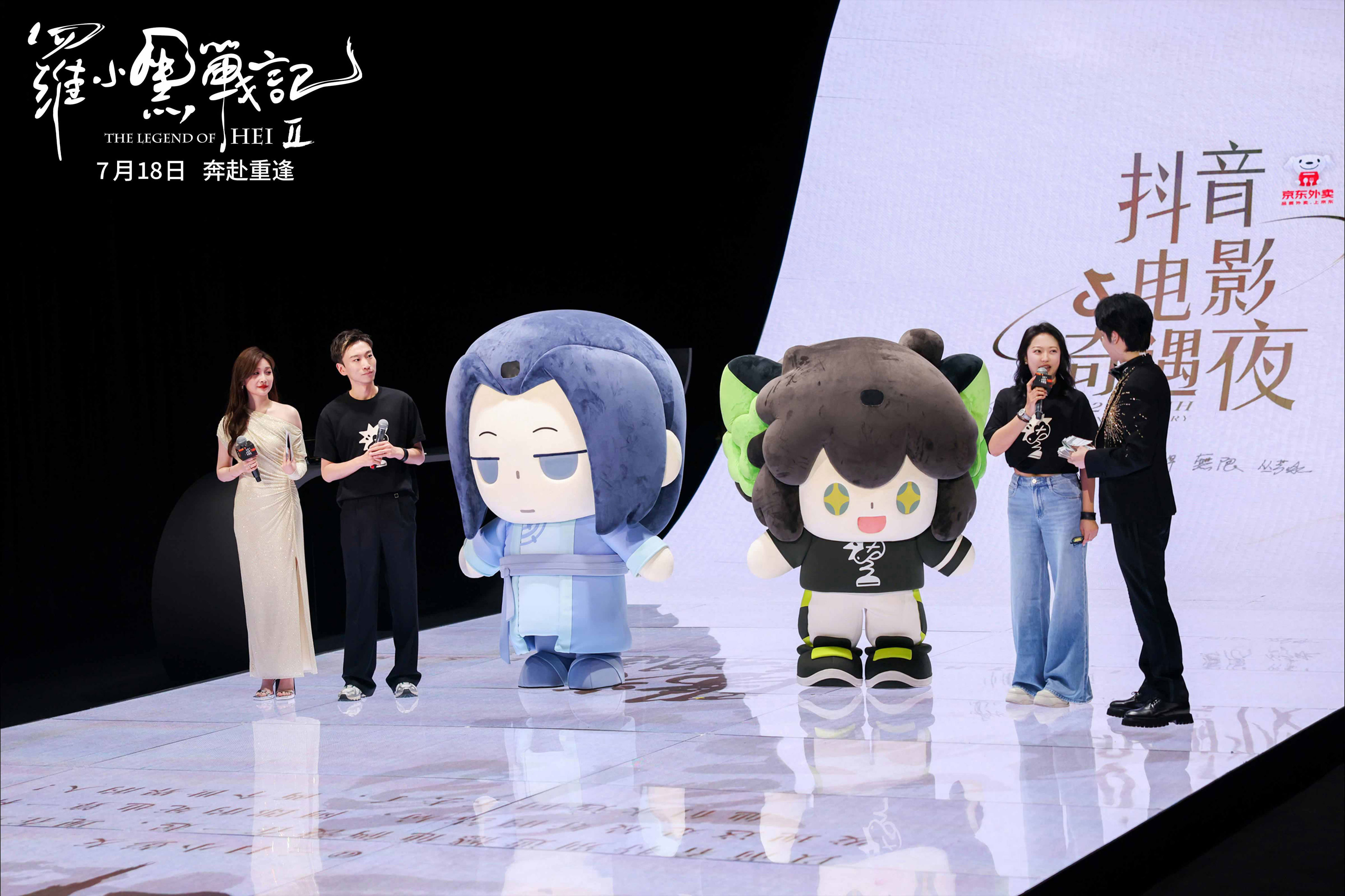 两位制片人也身着罗小黑同款T恤,手腕佩带小黑同款金属手环装置惊喜亮相。制片人曹紫建现场透露,续作在延续治愈画风的同时动作场面全面升级。同时,制片人丛芳冰也透露,在第一部中曾经被师父保护的小黑,经过六年的成长,在第二部中承担起了保护师父的角色。